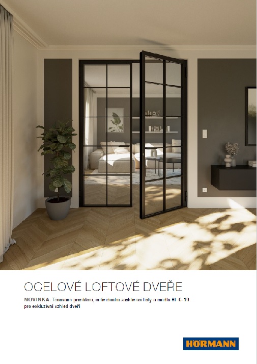 Loftové dveře Hörmann upoutají harmonickým sladěním oceli a skla. Díky tomuto spojení působí dveře moderně a elegantně. Velkorysé prosklené plochy dveří tvoří 6mm laminované bezpečnostní sklo, které je v základní výbavě provedeno jako čiré sklo a na přání pak s matnou fólií. Kvalitní ocelové profily vytvářejí díky svému úzkému viditelnému profilu s šířkou pouhých 76 mm u dveří a popř. 20 mm u pevného zasklení jasný design v moderním industriálním stylu. Při výběru skleněných příček můžete volit mezi úhlovými zasklívacími lištami nebo elegantnějšími zasklívacími lištami Slim.